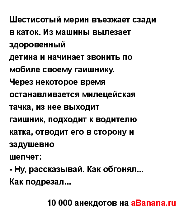 Шестисотый мерин въезжает сзади в каток. Из машины...