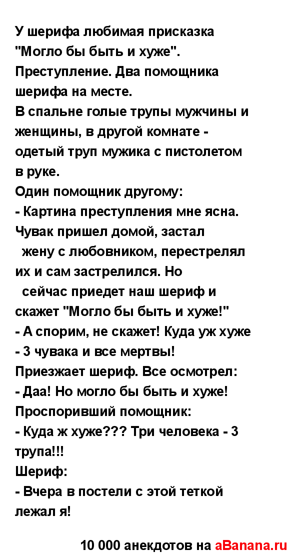У шерифа любимая присказка "Могло бы быть и хуже". ...