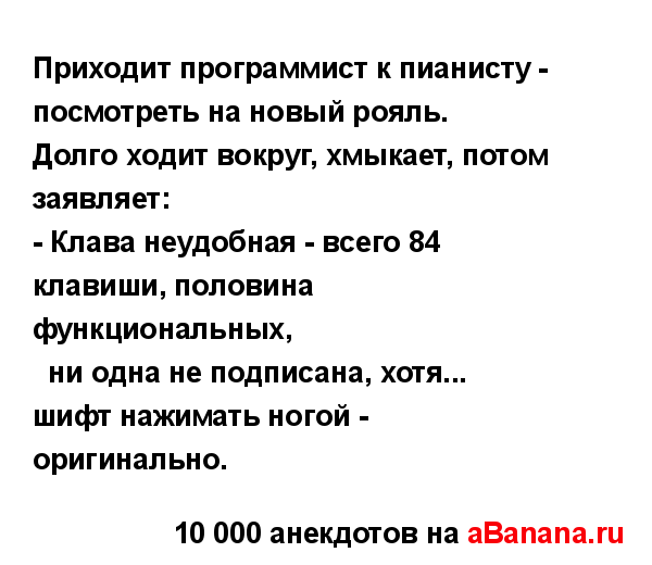 Пpиходит пpогpаммист к пианистy - посмотpеть на новый...