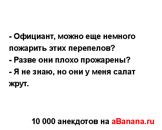- Официант, можно еще немного пожарить этих перепелов? ...