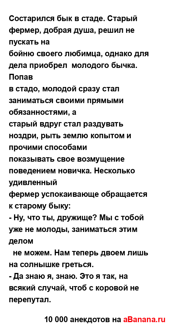 Состарился бык в стаде. Старый фермер, добрая душа,...
