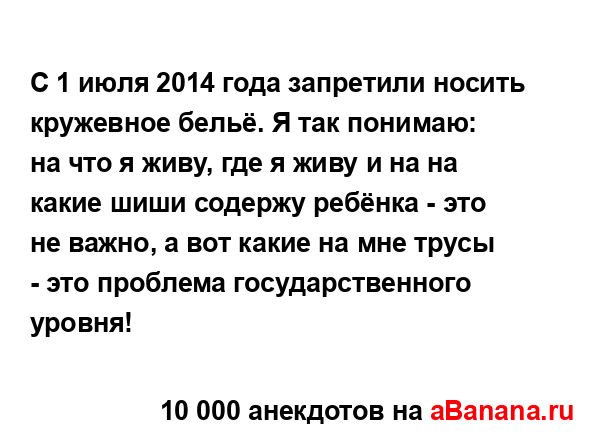 С 1 июля 2014 года запретили носить кружевное бельё. Я так...