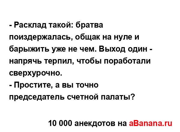- Расклад такой: братва поиздержалась, общак на нуле и...