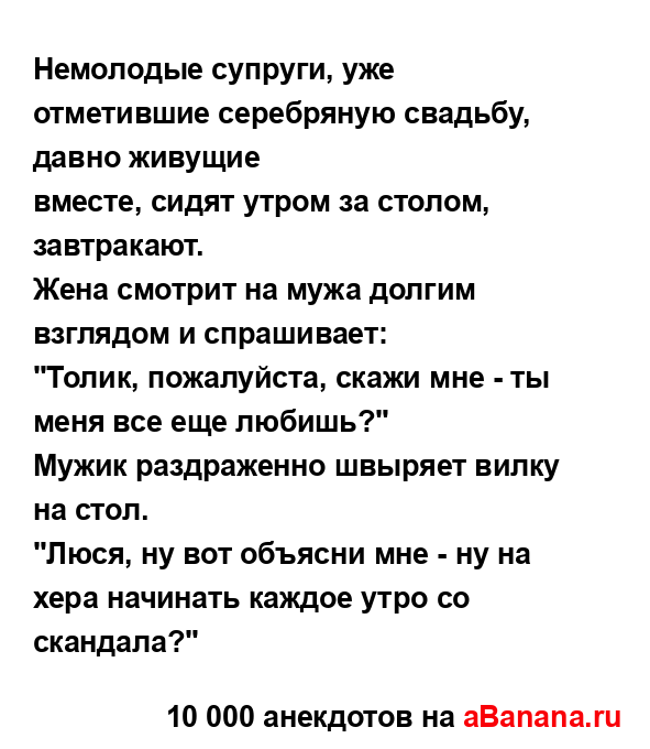 Немолодые супруги, уже отметившие серебряную свадьбу,...