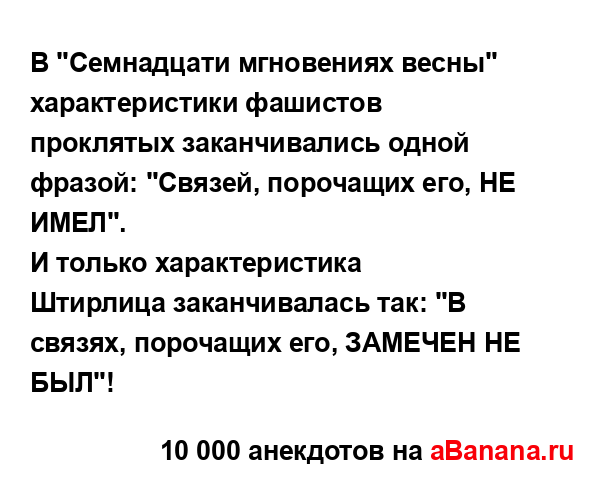 В "Семнадцати мгновениях весны" характеристики...