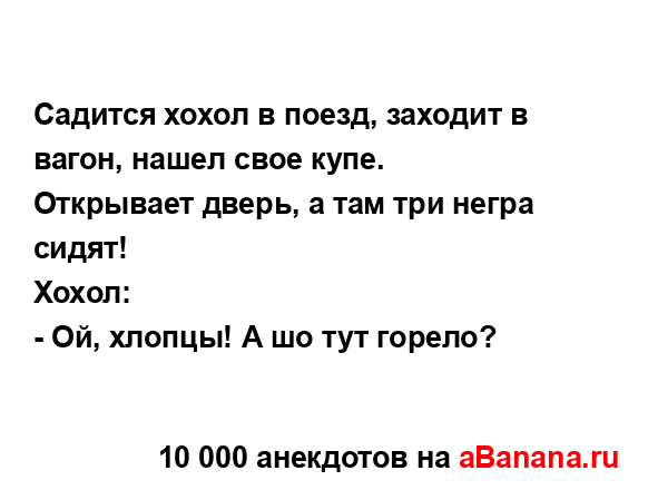Садится хохол в поезд, заходит в вагон, нашел свое...