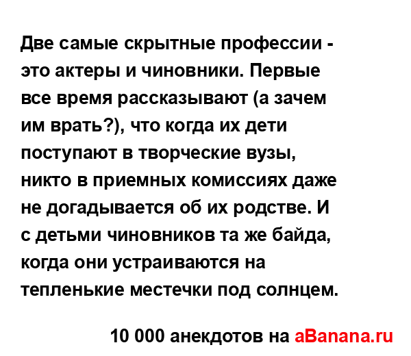 Две самые скрытные профессии - это актеры и чиновники....