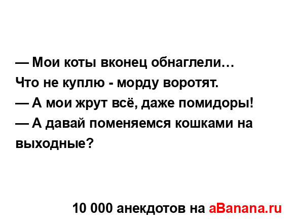 — Мои коты вконец обнаглели… Что не куплю - морду...