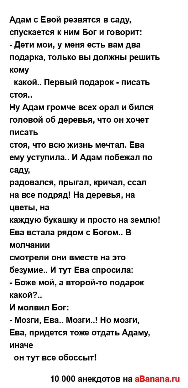 Адам с Евой резвятся в саду, спускается к ним Бог и...