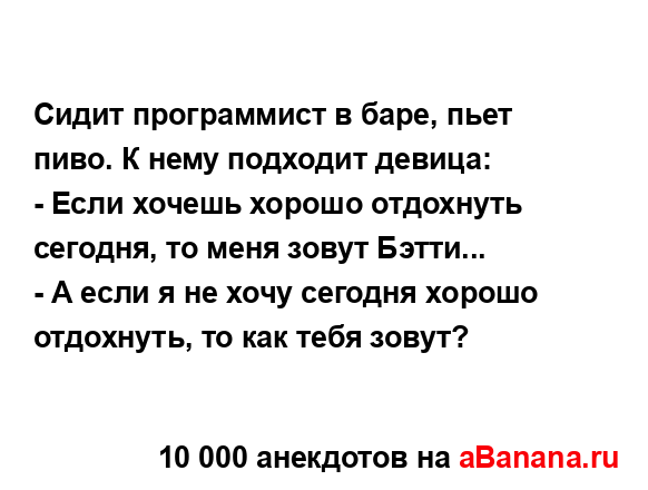 Сидит программист в баре, пьет пиво. К нему подходит...