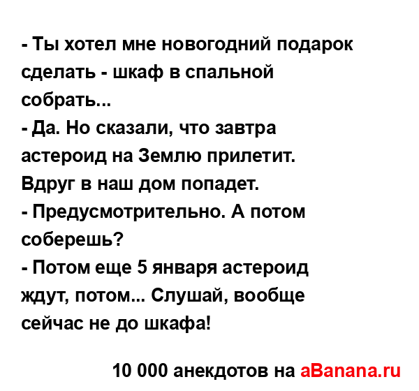 - Ты хотел мне новогодний подарок сделать - шкаф в...
