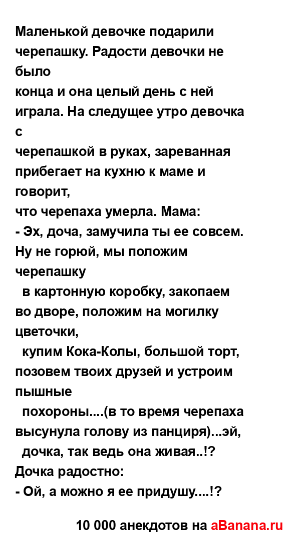 Маленькой девочке подарили черепашку. Радости девочки...
