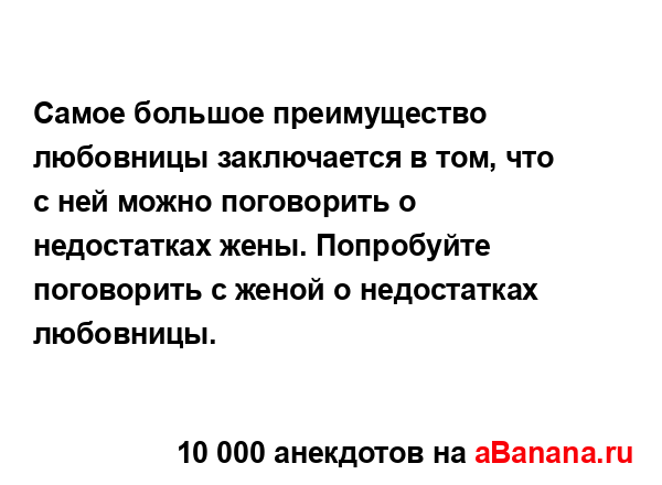 Самое большое преимущество любовницы заключается в...