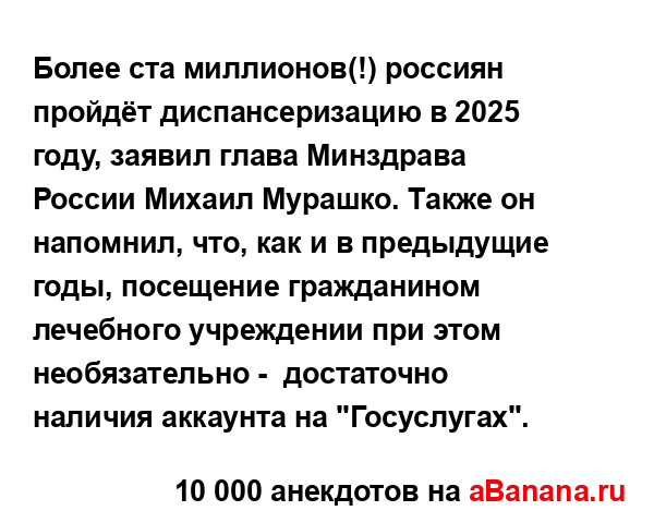 Более ста миллионов(!) россиян пройдёт диспансеризацию...