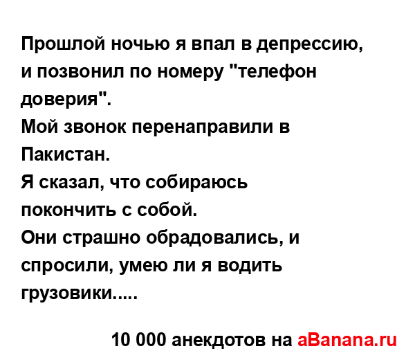 Прошлой ночью я впал в депрессию, и позвонил по номеру...