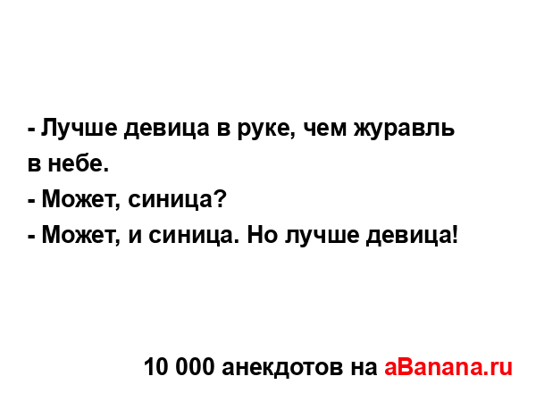 - Лучше девица в руке, чем журавль в небе. ...