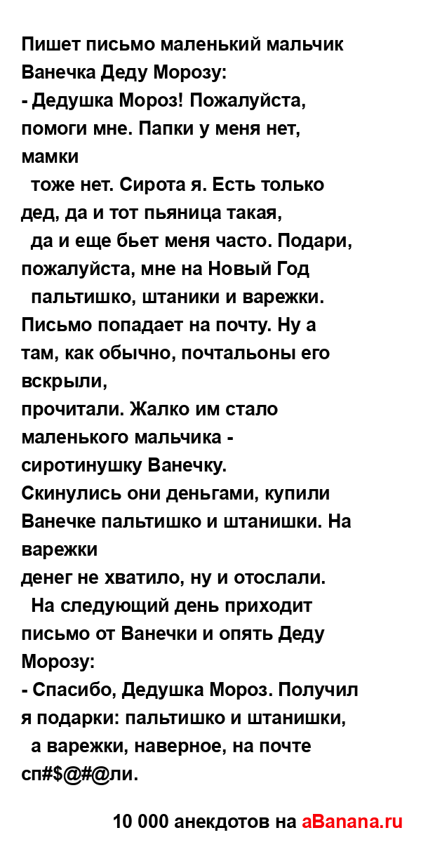 Пишет письмо маленький мальчик Ванечка Деду Морозу: ...