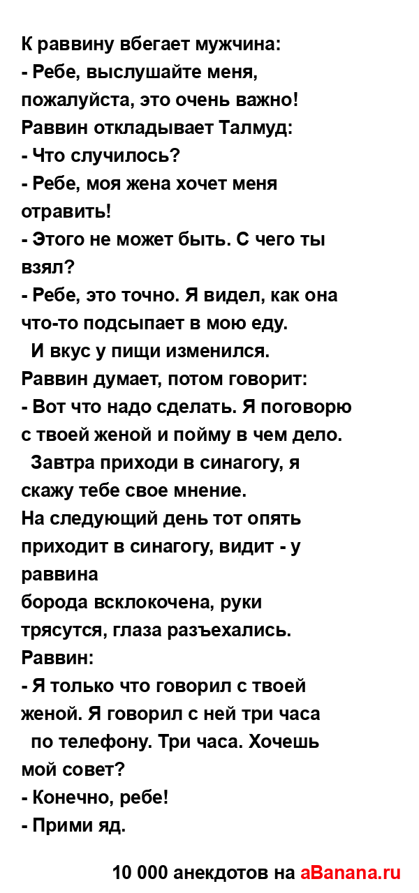 К раввину вбегает мужчина: ...