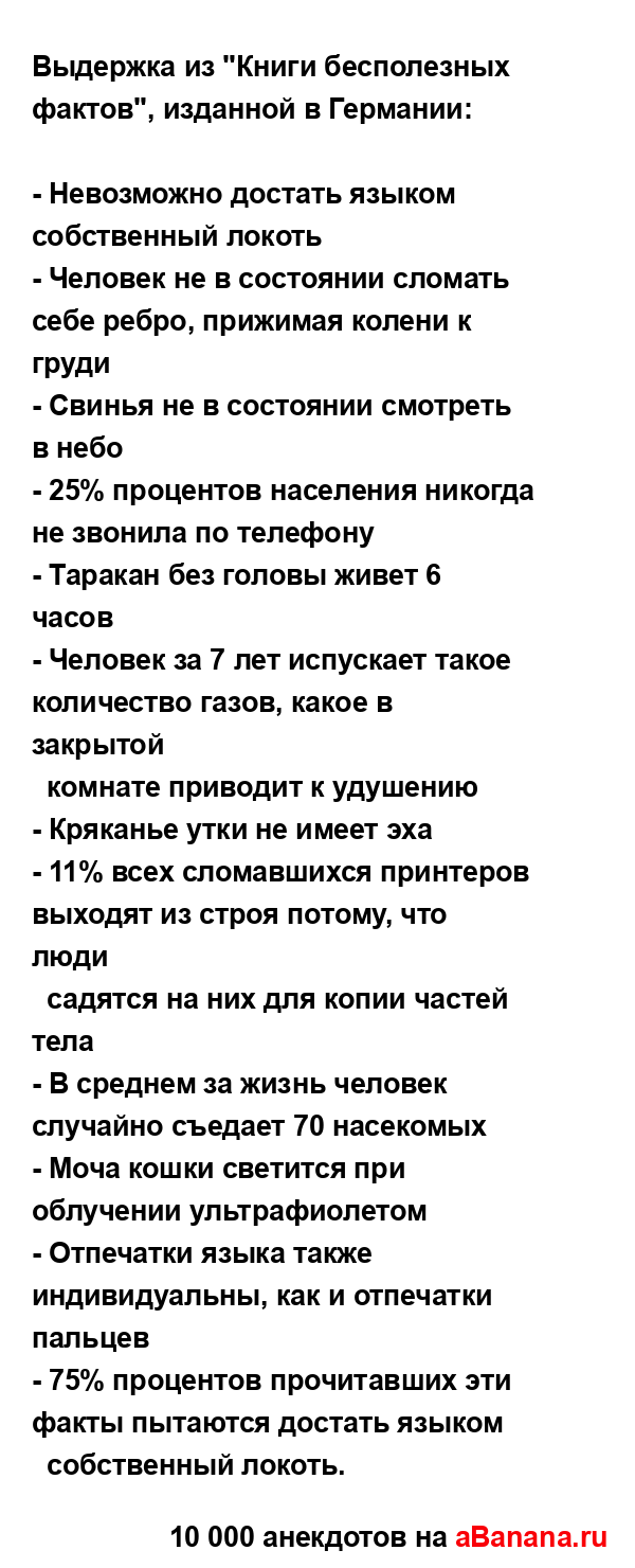 Выдержка из "Книги бесполезных фактов", изданной в...