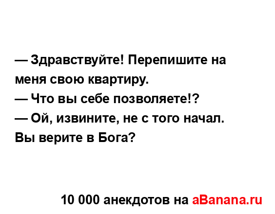 — Здравствуйте! Перепишите на меня свою квартиру. ...