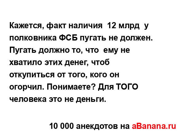 Кажется, факт наличия 12 млрд у полковника ФСБ пугать...