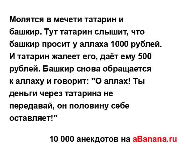 Молятся в мечети татарин и башкир. Тут татарин слышит,...