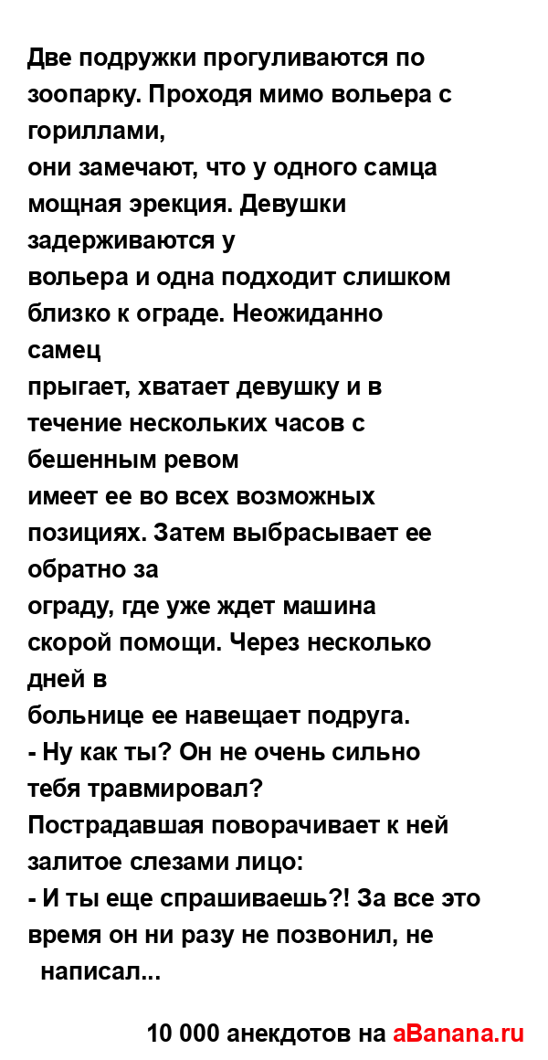 Две подружки прогуливаются по зоопарку. Проходя мимо...