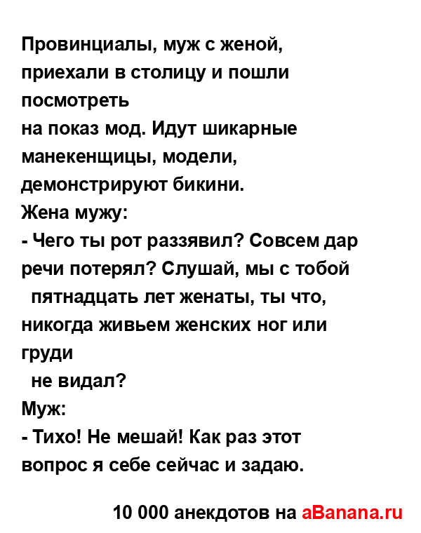 Провинциалы, муж с женой, приехали в столицу и пошли...