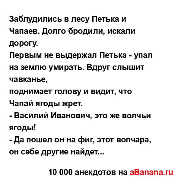 Заблудились в лесу Петька и Чапаев. Долго бродили,...