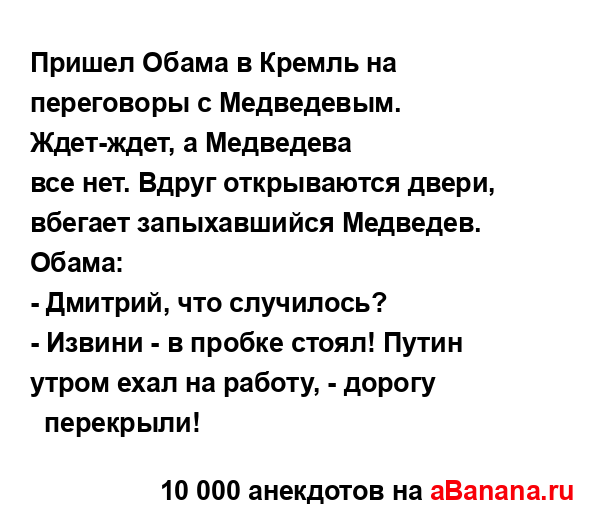 Пришел Обама в Кремль на переговоры с Медведевым....