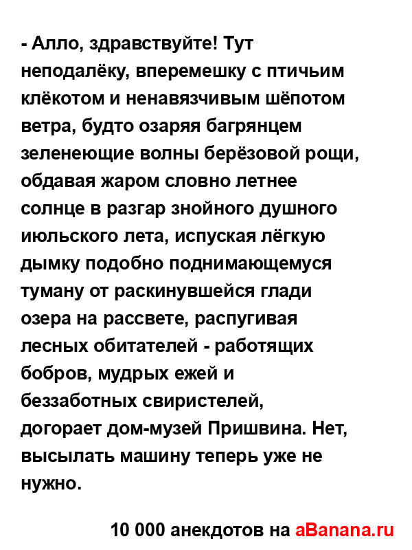 - Алло, здравствуйте! Тут неподалёку, вперемешку с...