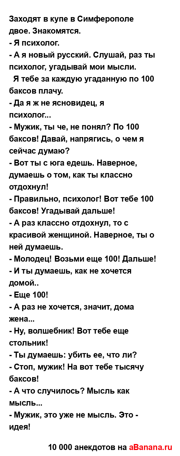 Заходят в купе в Симферополе двое. Знакомятся. ...