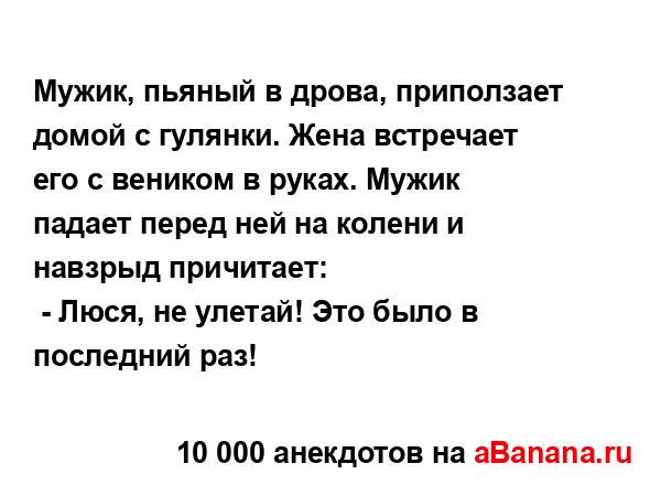 Мужик, пьяный в дрова, приползает домой с гулянки. Жена...
