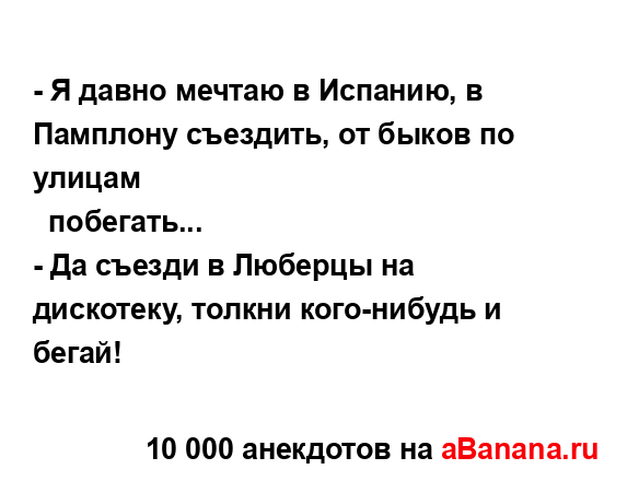 - Я давно мечтаю в Испанию, в Памплону съездить, от...