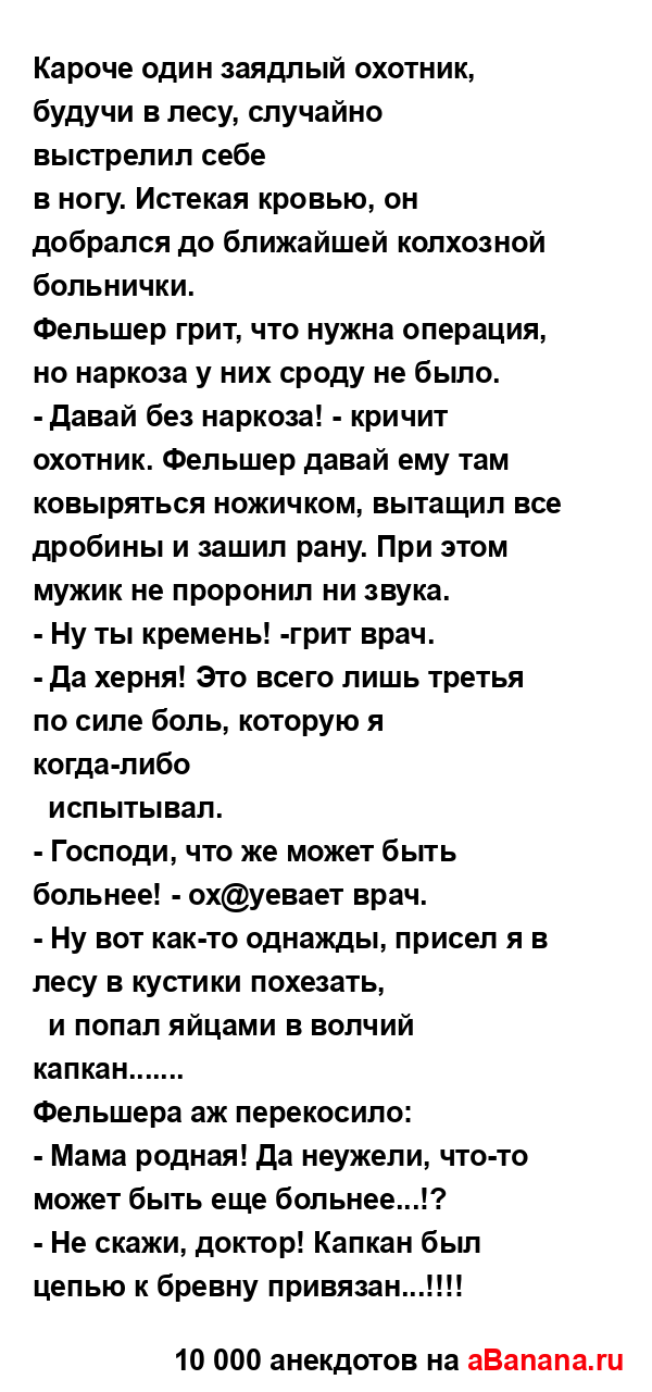 Кароче один заядлый охотник, будучи в лесу, случайно...