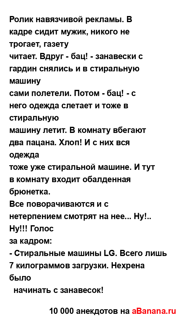 Ролик навязчивой рекламы. В кадре сидит мужик, никого...