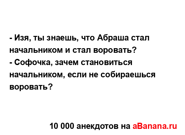- Изя, ты знаешь, что Абраша стал начальником и стал...