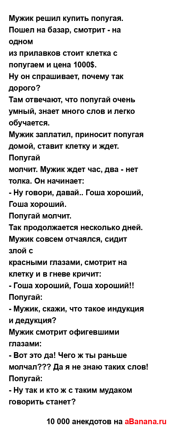 Мужик решил купить попугая. Пошел на базар, смотрит - на...
