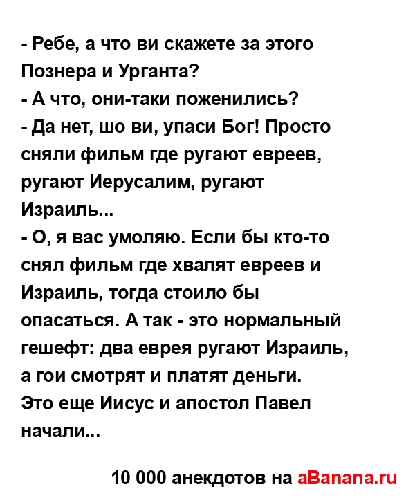 - Ребе, а что ви скажете за этого Познера и Урганта? ...