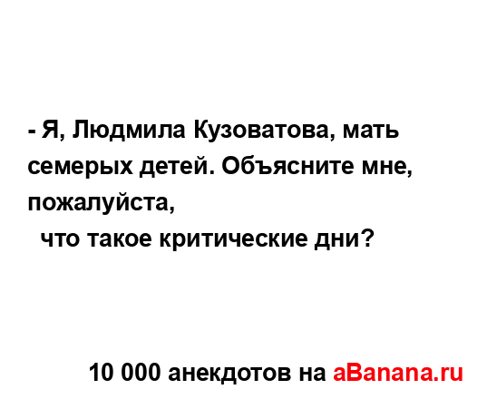 - Я, Людмила Кузоватова, мать семерых детей. Объясните...
