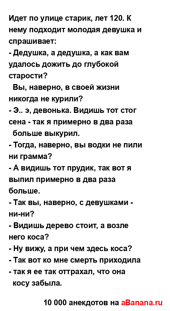 Идет по улице старик, лет 120. К нему подходит молодая...