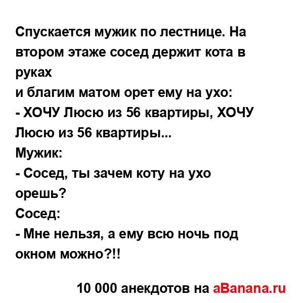 Спускается мужик по лестнице. На втором этаже сосед...