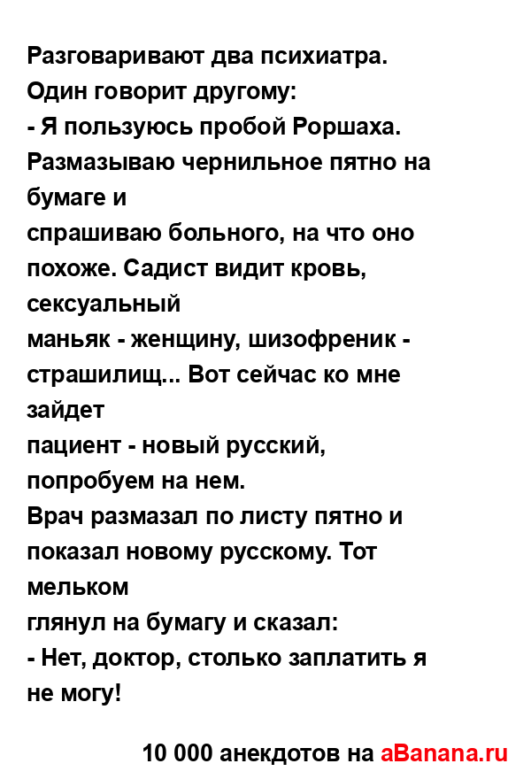 Разговаривают два психиатра. Один говорит другому: ...