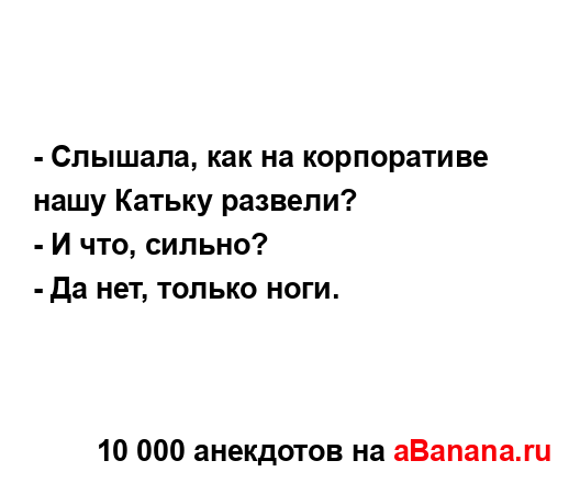 - Слышала, как на корпоративе нашу Катьку развели? ...