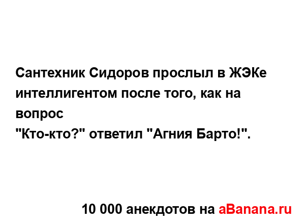 Сантехник Сидоров прослыл в ЖЭКе интеллигентом после...