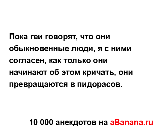 Пока геи говорят, что они обыкновенные люди, я с ними...