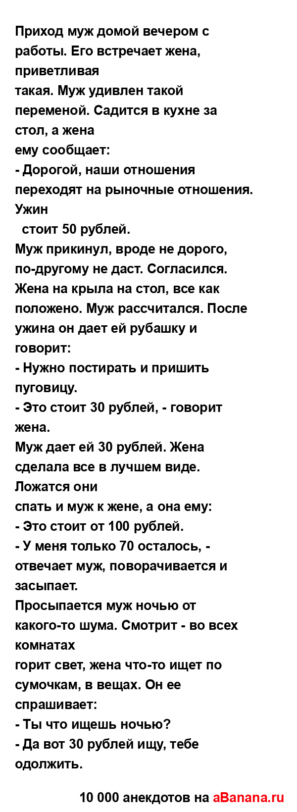 Приход муж домой вечером с работы. Его встречает жена,...