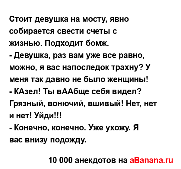 Стоит девушка на мосту, явно собирается свести счеты с...