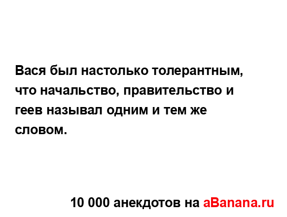 Вася был настолько толерантным, что начальство,...
