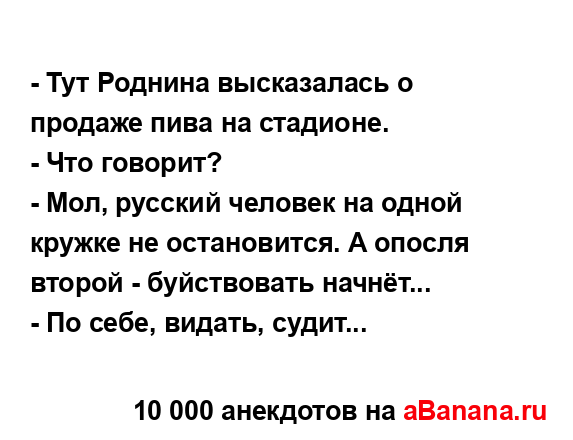 - Тут Роднина высказалась о продаже пива на стадионе. ...